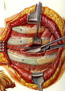 TRATAMIENTO QUIR�RGICO :ABORDAJE TOR�CICO II Los m�sculos intercostales son seccionados en el 4� espacio intercostal izquierdo |